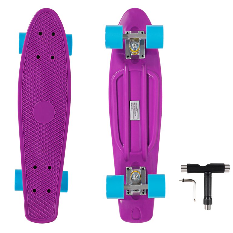 Kids Pro Stunt Mini Skateboard Beginner Children Tricks Plastic Skateboard For Kids With T Tool Accessory Purple Walmart Com